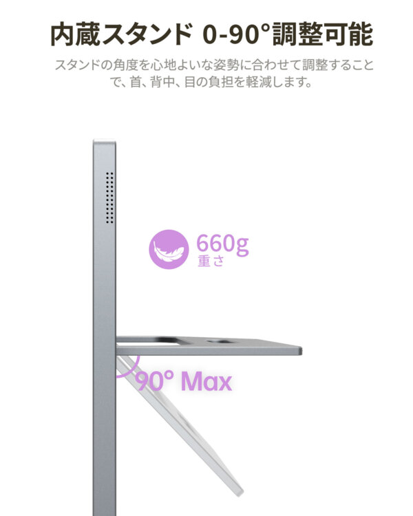 • 【縦横両対応自立型スタンド】横画面では動画編集やプレゼン資料の確認に、縦画面ではウェブサイトや長文ドキュメント、SNSフィードの閲覧に最適です。用途に合わせて瞬時に切り替えられるため、MacBookやMac miniと組み合わせればサブモニターとして作業効率が大幅に向上。さらに角度調整にも対応しており、長時間の在宅ワークやクリエイティブ作業でも快適に使用できます。