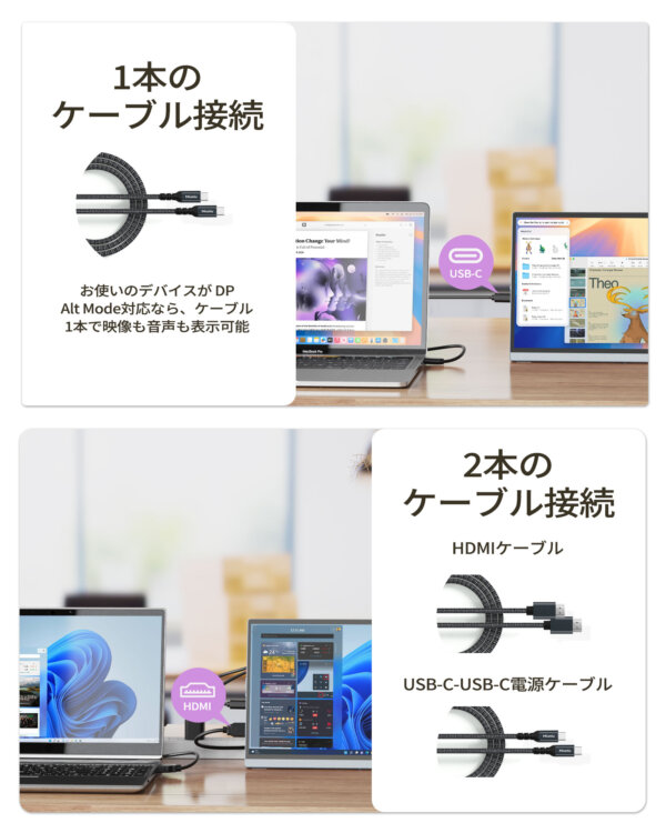 • 【多彩な接続性&汎用性】フル機能USB Type-Cポート×2と標準HDMIポートを搭載。PC・Mac・Switch・PS5・スマホなど幅広いデバイスに接続可能。お使いのデバイスがUSB 3.1に対応していれば、1本のUSB Type-Cケーブルで映像出力・給電・データ転送を同時に実現。ビジネス用サブモニターとして幅広く活躍します。