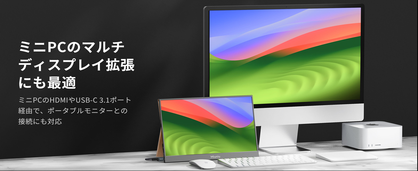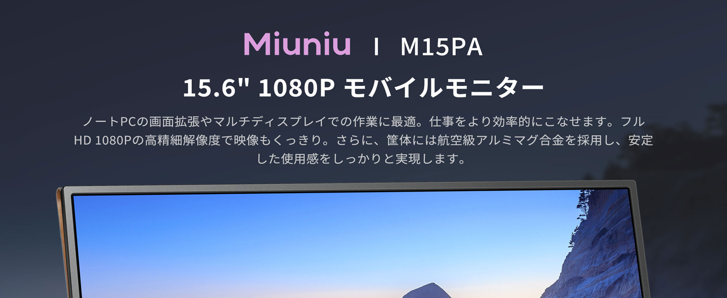 Miuniu モバイルモニター 15.6インチ 1920×1080 16:9 モバイルディスプレイ 軽量 非光沢IPS液晶パネル サブモニター pc 3年保証/USB Type-C/標準HDMI搭載/金属製 VESA対応 ポータブルモニター M15PA
