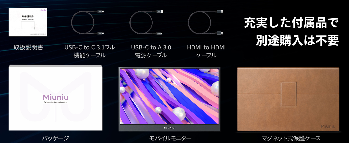 - 【業界トップクラスの3年保証】Miuniu モバイルモニターは3年間の長期保証がお守りします。長期間安心してお使いいただけます。万が一の不具合や操作に関する疑問があっても、日本語でのメール・電話サポートに対応して、初めてポータブルモニターを購入する方におすすめです。テレワーク、ゲーム、映画鑑賞など、あらゆるライフスタイルに寄り添う信頼の一台です。